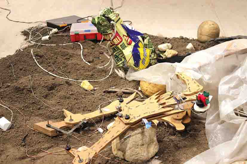 “In Ixtli in Yollotl” (Nosotros el pueblo), la exposición revela la formación como ingeniero químico de Palma (Ciudad de México, 1957), cuyas piezas robotizadas sirven como punto de reflexión en torno a la explotación de la tierra, el medio ambiente y las culturas indígenas.