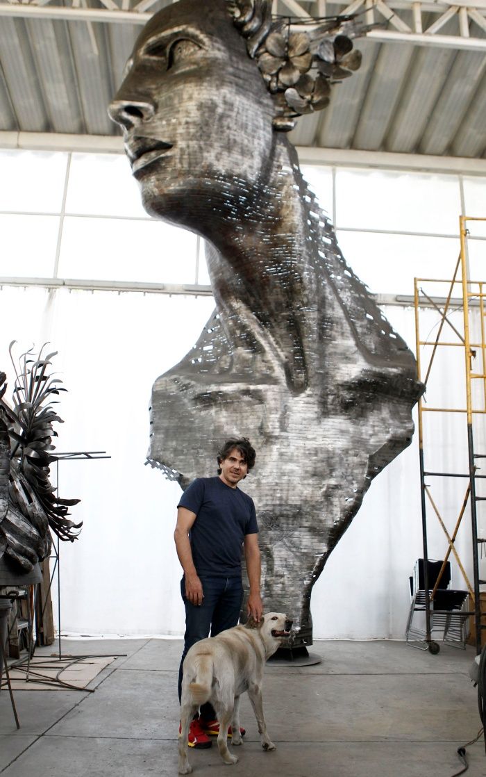 Contemplada como una de las obras que dan la bienvenida a la ciudad, Rafa modeló un rostro de mujer con flores en la parte superior, hecho con acero reciclado.