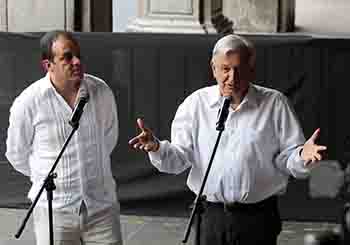“Los sindicatos no deben de estar apoyados por el gobierno, los líderes sindicales no deben de representar al gobierno, deben de representar a los trabajadores”, dijo. Tras el encuentro en Palacio de Gobierno el presidente electo dio su respaldo al gobernador de Morelos, Cuauhtémoc Blanco, y afirmó que tienen la dicha de contar con un mandatario estatal surgido de su movimiento, “al que apoyamos mucho, al que respaldamos”.