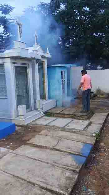 Mencionó que en esta temporada es muy común que en los floreros se acumule agua de lluvia, o que las personas que visitan los cementerios les pongan agua, por lo que al cabo de unos días se convierten en criaderos de moscos; debido a ello el personal de vectores inició los trabajos de abatización y nebulización en dichos recintos.