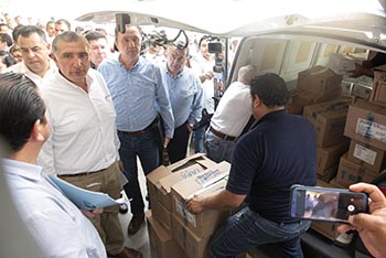 Durante un recorrido que realizó en las instalaciones del hospital Juan Graham, el Gobernador del Estado, Adán Augusto López Hernández, hizo entrega de medicamentos y material de curación a dicho nosocomio por lo que hizo un llamado a los proveedores para que “no se manden con los precios”.
