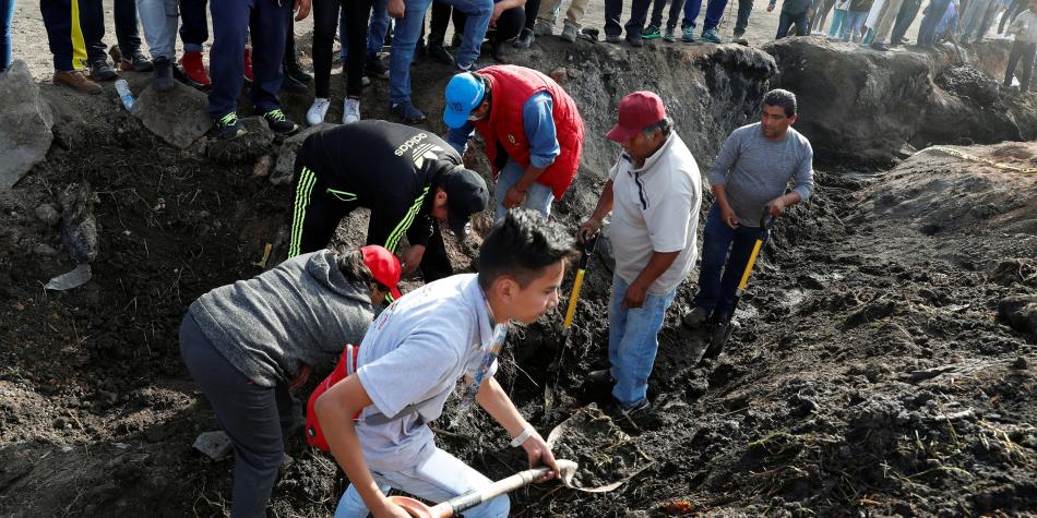 Un grupo de al menos 200 pobladores invaden la zona acordonada en donde ocurrió la explosión de un ducto de Pemex, en el poblado de San Primitivo y realizan excavaciones en busca de restos humanos.