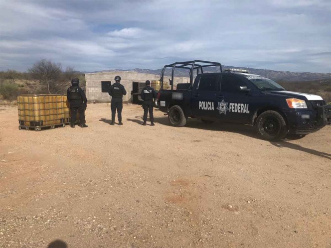 En una primera acción, los elementos federales recibieron una denuncia de que en los alrededores del panteón ubicado en la colonia Nuevo Magdalena de Nogales, Sonora, se encontraban personas con contenedores al parecer con hidrocarburo.