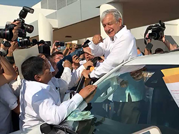 En algún momento, un ciudadano se acercó al presidente y le levantó el brazo izquierdo en señal de victoria, mientras su equipo de trabajo recogía escritos y peticiones de los tabasqueños para hacerlos llegar al presidente.
