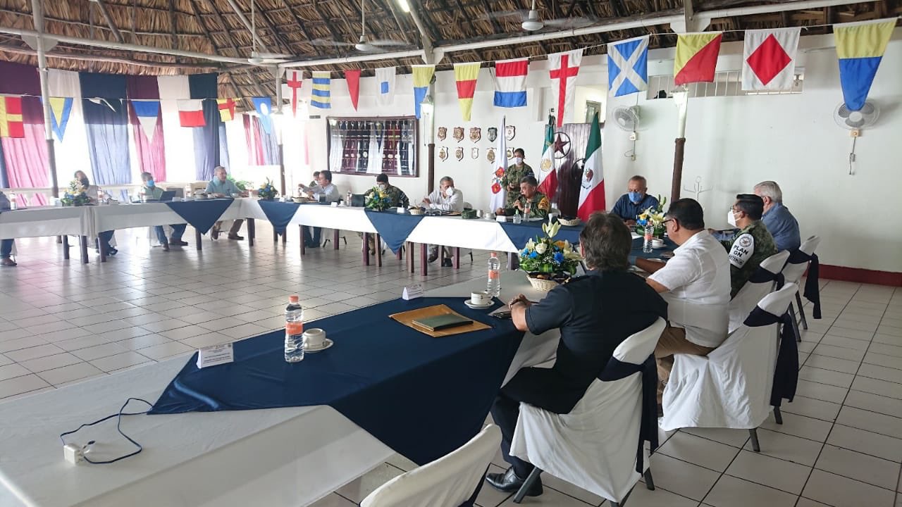 Para evaluar y reforzar las acciones de combate a la delincuencia que garanticen la paz y la tranquilidad en Tabasco, el gobernador Adán Augusto López Hernández encabezó esta mañana la reunión de la Mesa de Seguridad y Justicia, en el Casino Naval de la Quinta Zona Naval en Frontera, Centla.
