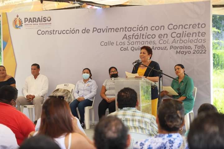 PARAÍSO, TAB.- Con una inversión de 2 millones 114 mil el ayuntamiento de Paraíso que preside Ana Luisa Castellanos Hernández , dio banderazo de inicio de los trabajos de pavimento con concreto asfaltico en caliente en calle Los Samanes de la colonia Arboledas en Quintín Arauz; magna obra que se realizará con Fondo para Entidades y Municipios Productores de Hidrocarburos en Regiones Marítimas. La alcaldesa Paraiseña estuvo acompañada del Sindico de Hacienda, Francisco De la cruz Minaya, la regidora, María Trinidad Torres Vera, la presidenta del DIF municipal Angélica Rodríguez Castellanos, así como de la Subdelegada, Yadira Meza Domínguez.