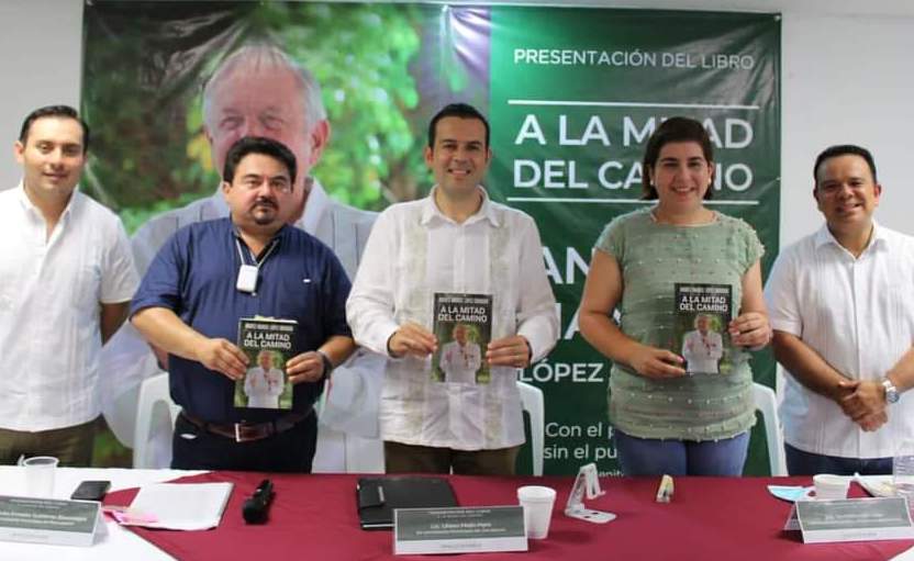 MACUSPANA, TAB.- Presentan el libro “A la mitad del camino”, de autoría del Lic. Andrés Manuel López Obrador, Presidente de México, con la participación de disertantes de nivel nacional, estatal y municipal, entre ellos el alcalde macuspanense, Julio Ernesto Gutiérrez Bocanegra.