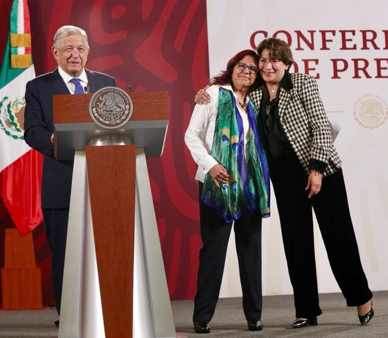 “Y quiero aprovechar para presentarles a quien va a sustituir a la maestra Delfina. Se trata de otra maestra: Leticia Ramírez. Ella, Lety, no solo ha estado aquí todas las mañanas porque Lety tiene como profesión ser maestra, dio clases 12 años, igual que la maestra Delfina, ella más tiempo, pero maestras de aula durante mucho tiempo. Además de eso nos conocemos desde hace 28 años”, expresó el Presidente.