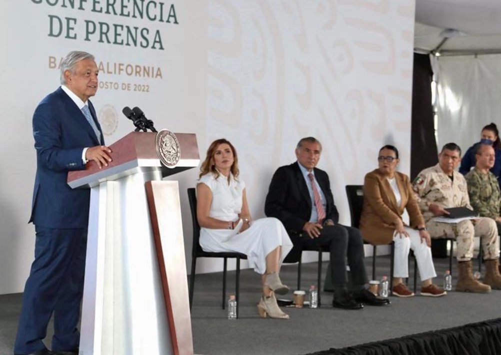 En conferencia de prensa en las instalaciones de la Zona Militar número 2 en Tijuana, acompañado por la gobernadora morenista Marina del Pila Ávila y por su Gabinete de Seguridad, López Obrador rechazó que haya reforzado su seguridad y destacó que no tiene escoltas ni carros blindados.
