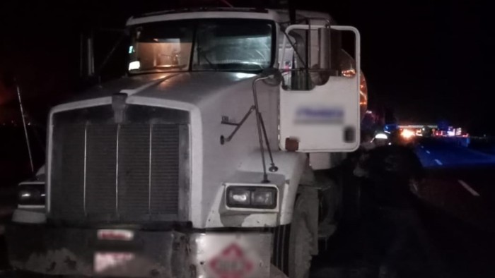Al realizar patrullajes de prevención y seguridad en el kilómetro 043+800 de la carretera Coatzacoalcos-Villahermosa, guardias nacionales ubicaron un tractocamión acoplado a un semirremolque tipo tanque, el cual presentaba una abolladura del lado izquierdo, motivo de una infracción al Reglamento de Tránsito.