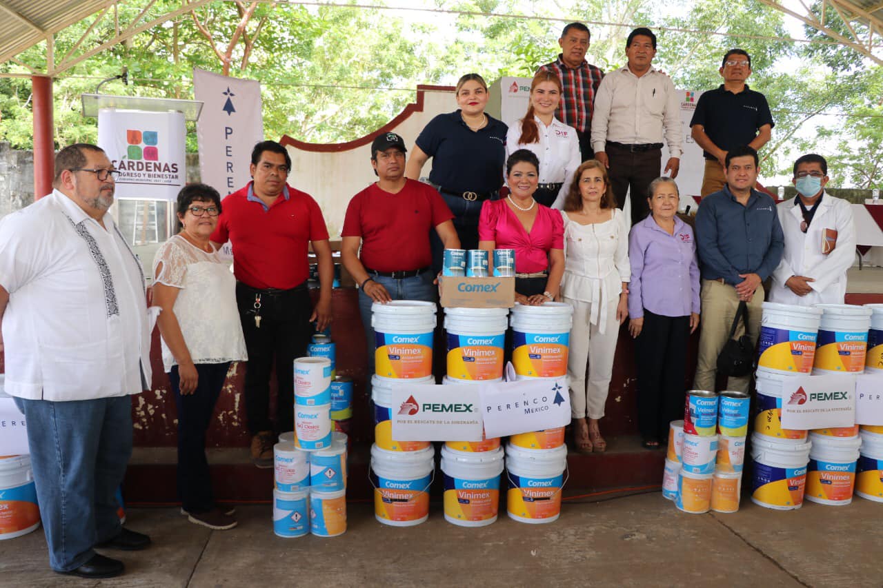 CÁRDENAS, TAB.- La suma de esfuerzos entre el gobierno de Cárdenas y las empresas petroleras que operan en el municipio, se concretaron apoyos para las escuelas de la Villa Benito Juárez y cientos de niños.
