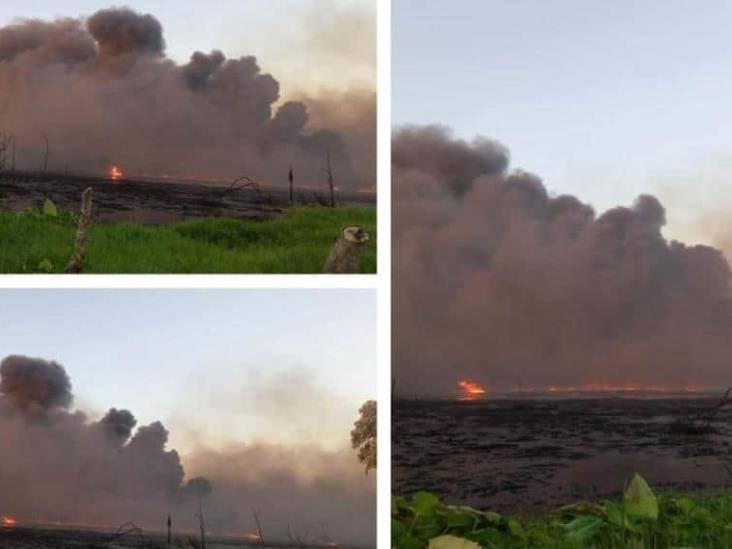 Petróleos Mexicanos (Pemex) atiende un incendio en una zona de pastizal en Villa La Venta, Huimanguillo, Tabasco, donde hasta el momento no se reportan lesionados, daños a la comunidad, a las instalaciones, ni al medio ambiente.