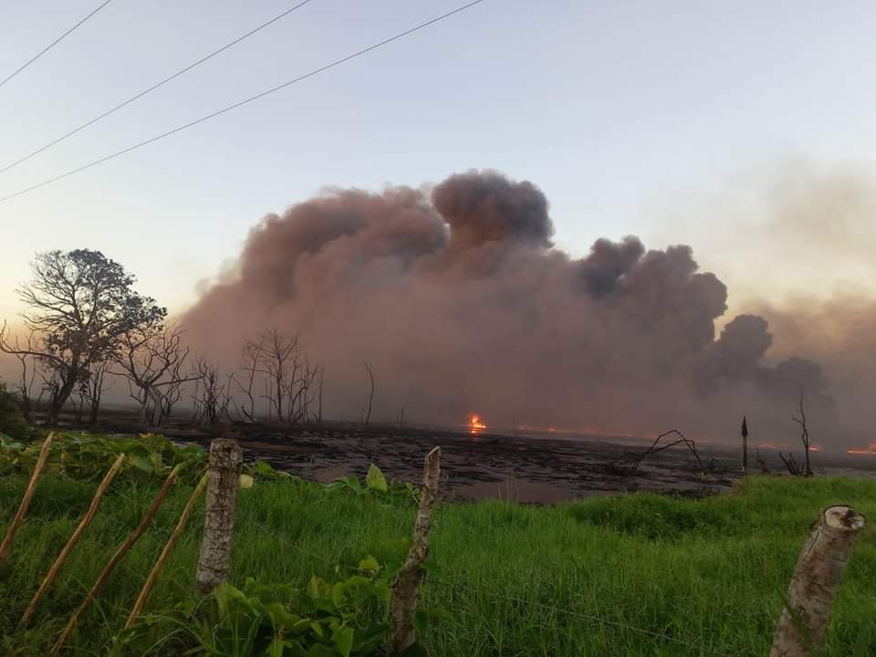 Posterior a la explosión que se suscitó en unos espadañales contaminados con crudo en la arqueológica ciudad de La Venta, personal de protección civil local a cargo de Roberto Barahona y del estado, así como personal de contraincendio de Pemex han logrado sofocar en un 80 por ciento el siniestro, tarea que no ha sido fácil por el cambio constante de dirección de las ráfagas de aire que hacen más difícil la tarea de los tragahumos.
