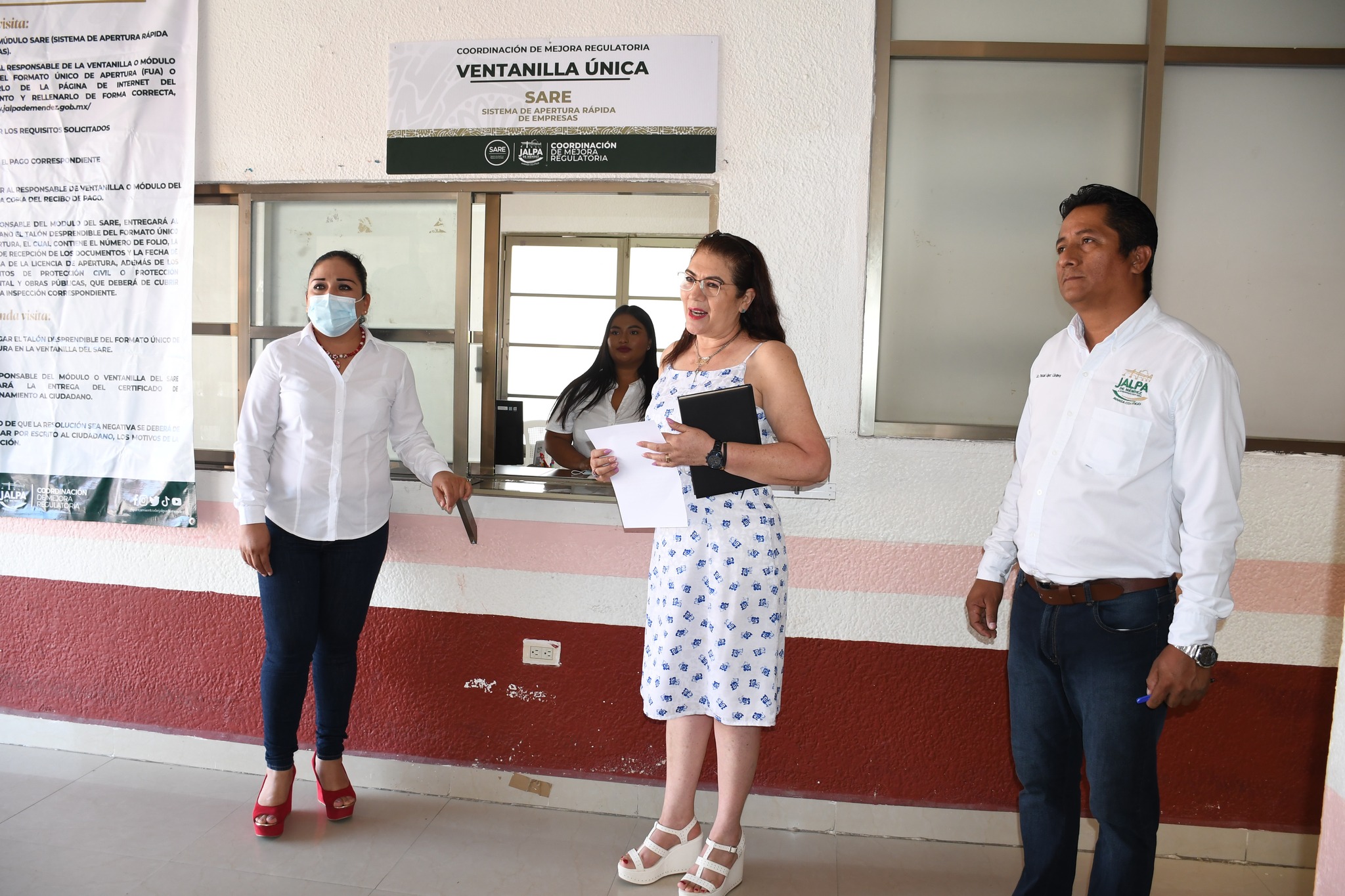 JALPA DE MÉNDEZ, TAB.- Para promover la inversión y facilitar el establecimiento de nuevas empresas, a través de una regularización sencilla, la alcaldesa Nuris Lopez Sánchez, presidió una reunión de trabajo para validar visualmente el módulo del Sistema de Apertura Rápida de Empresas #SARE del municipio de #JalpaDeMéndez, así como el procedimiento que lleva a cabo para otorgar la Licencia de Funcionamiento de Bajo Riesgo e Impacto; lo anterior como parte del proceso para otorgar la certificación de reconocimiento del Sistema de Apertura Rápida de Empresas (SARE), que otorga la Comisión Nacional de Mejora Regulatoria (CONAMER).