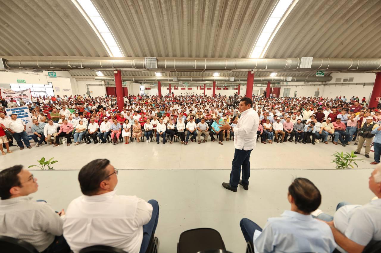 Acompañado de líderes de las uniones de servicio en diversas modalidades, Javier May se comprometió a modernizar la infraestructura de movilidad.