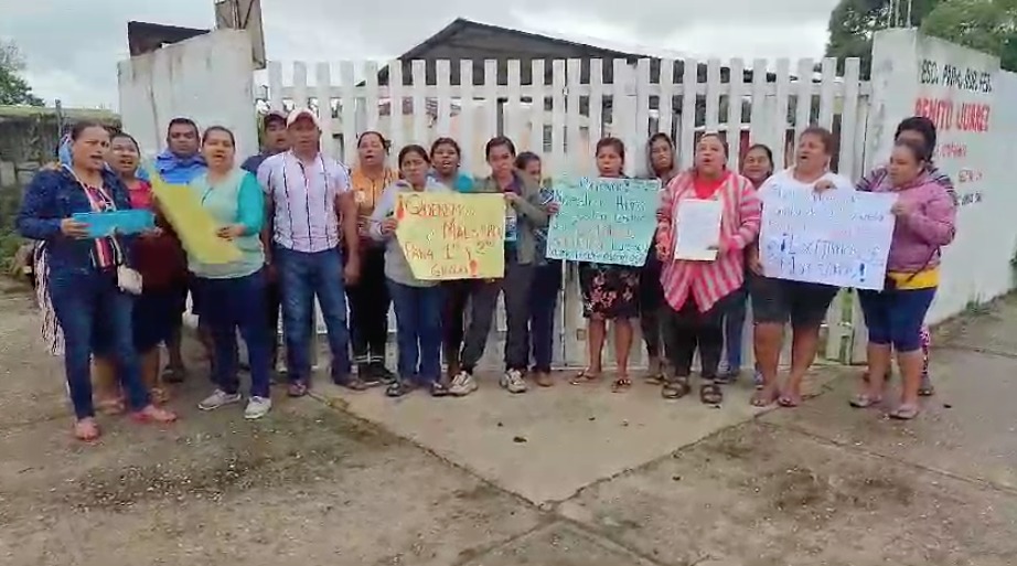 JONUTA, TAB.- Padres de familias de la escuela primaria “Benito Juárez”, en la ranchería Torno Largo primera sección, protestan enérgicamente y tomaron pacificamente el plantel exigen a la Secretaria de Educación en la entidad, Patricia Iparrea Sánchez que asignen días maestros a los niños del primero y segundo grado.