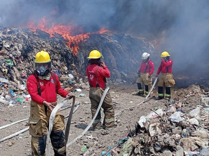 Durante estos días, se han utilizado 300 mil litros de agua en el combate al fuego, sin embargo, el tipo de material sólido en llamas ha dificultado que los trabajos avancen a mayor velocidad.
