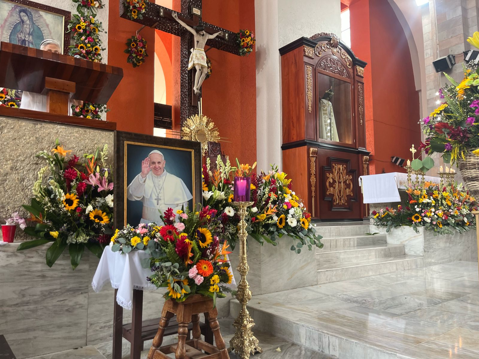 Previo al repique, fieles católicos se congregaron al interior de la Catedral del Señor de Tabasco, para elevar oraciones por el alma del primer Papa de Roma de origen latinoamericano.