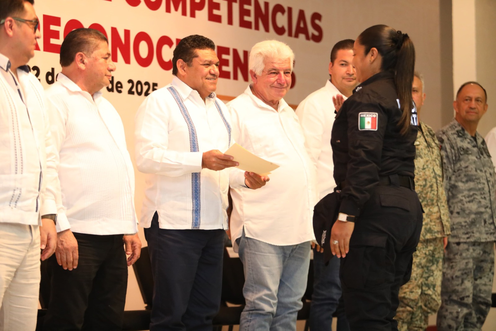 El Gobierno del Pueblo apuesta por el desarrollo profesional, el bienestar laboral y el fortalecimiento de las instituciones de seguridad del estado, puntualizó el Gobernador Javier May Rodríguez al encabezar la ceremonia de entrega de reconocimientos a 38 policías de siete municipios que concluyeron el Curso de Formación Inicial y en cuyo marco clausuró el Taller de Capacitación de Competencias Básicas de la Función Policial, donde participaron 925 elementos de 15 municipios.