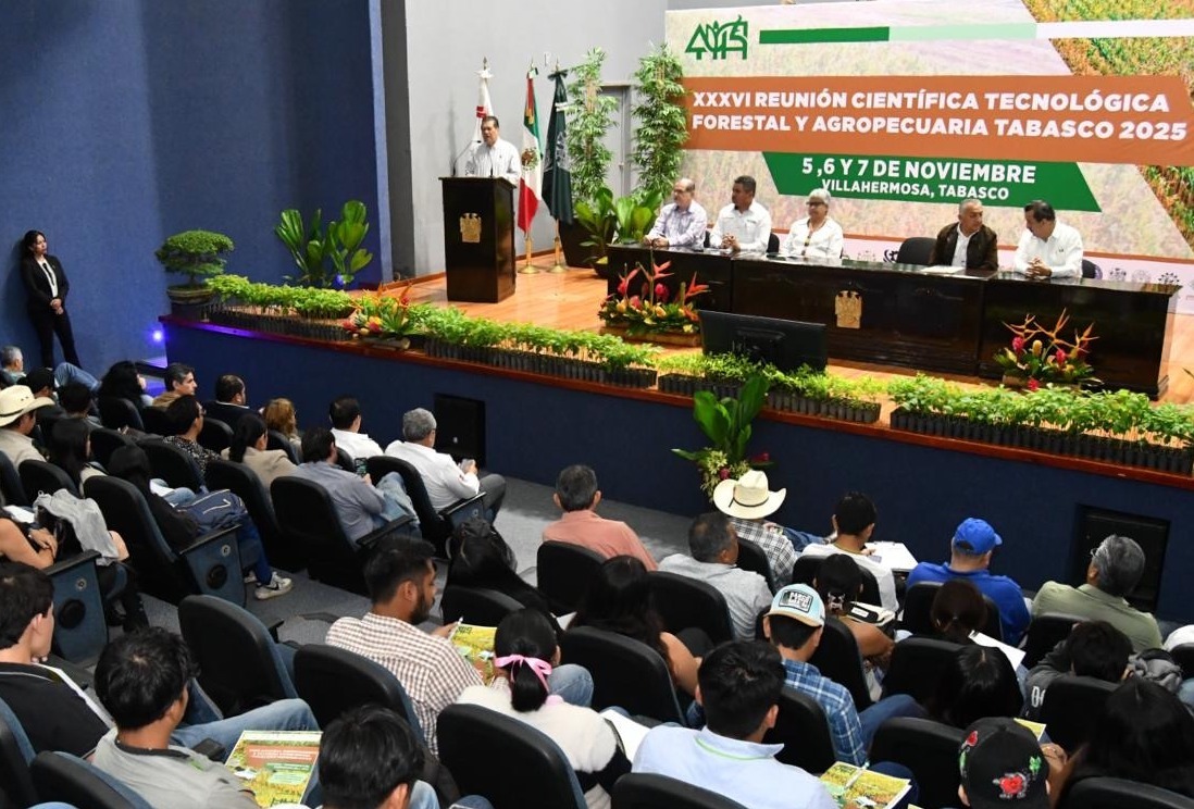Así lo destacó el rector de la UJAT, Guillermo Narváez Osorio, al dar la bienvenida a la XXXVI Reunión Científica Tecnológica Forestal y Agropecuaria Tabasco 2025 y XII Simposio Internacional en Producción Agroalimentaria Tropical, que fueron inaugurados por la representante del gobernador Javier May Rodríguez; la titular de la Secretaría de Desarrollo Agropecuario y Pesca (SEDAFOP), Luisa del Carmen Cámara Cabrales.
