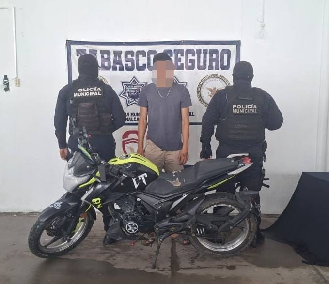 Por tales hechos, fue detenido Williams “N”, de 20 años de edad, con domicilio en el municipio de Cárdenas, quien junto con la motocicleta 150z –relacionada a la carpeta de investigación CI-TEC-719/2024– fueron puestos a disposición de la autoridad correspondiente
