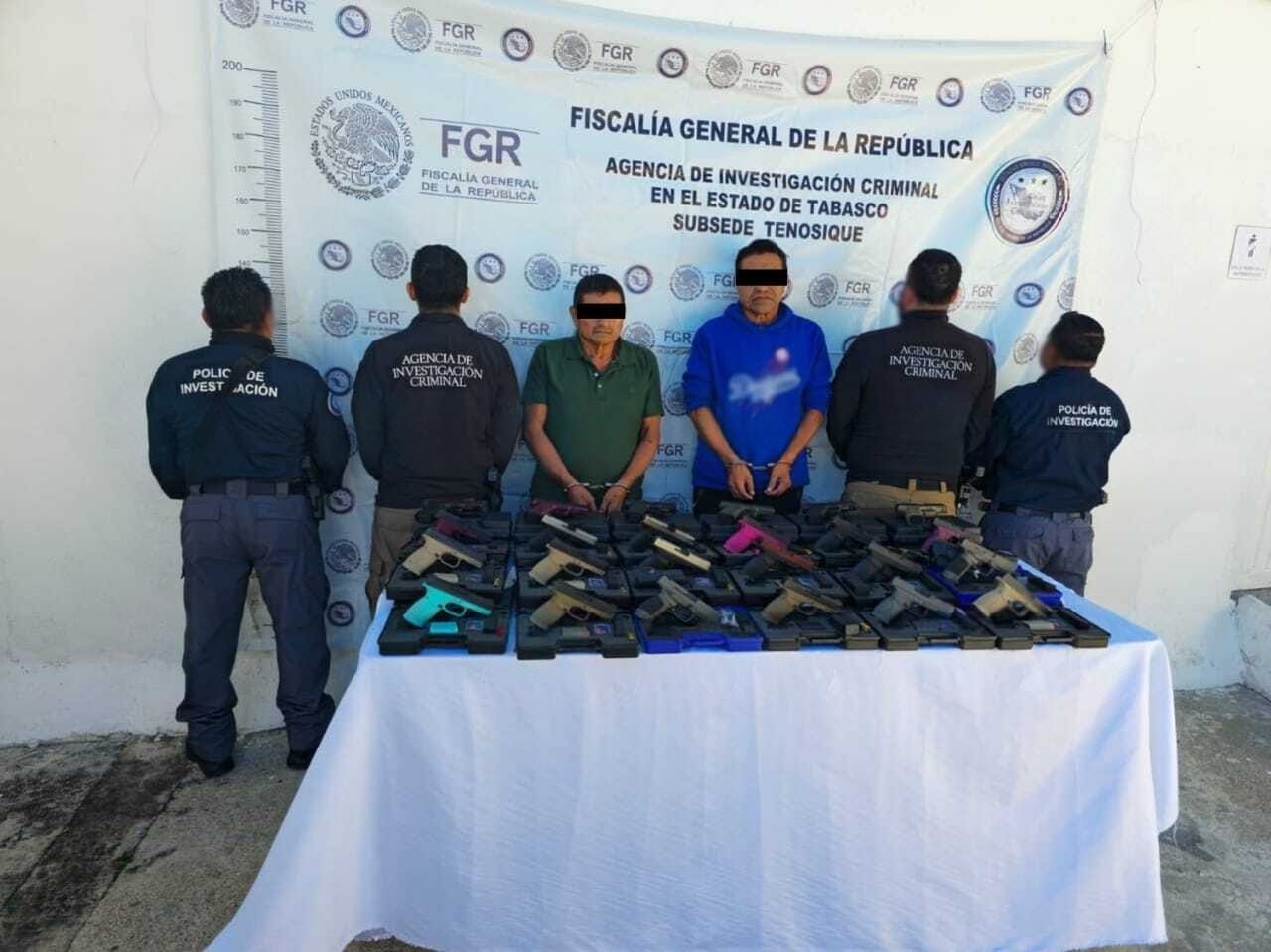 Elementos de la Fiscalía General de la República (FGR) aseguraron un importante arsenal durante un operativo de revisión instalado en la carretera Tenosique–El Ceibo, a la altura del ejido Xhontal. De acuerdo con el informe oficial, en el retén fueron decomisadas 24 armas de fuego calibre 9 milímetros y 70 cargadores, todos considerados de uso exclusivo del Ejército, los cuales eran transportados de manera oculta en una unidad tipo combi de pasajeros proveniente de la frontera con Guatemala. El armamento asegurado tendría un valor aproximado de medio millón de pesos en el mercado ilícito. Durante la acción fueron detenidos el conductor del vehículo y uno de los pasajeros, este último identificado como presunto traficante de armas. Ambos fueron puestos a disposición de la delegación de la FGR en Tenosique, donde se continuará con las investigaciones correspondientes para esclarecer el origen y destino del arsenal