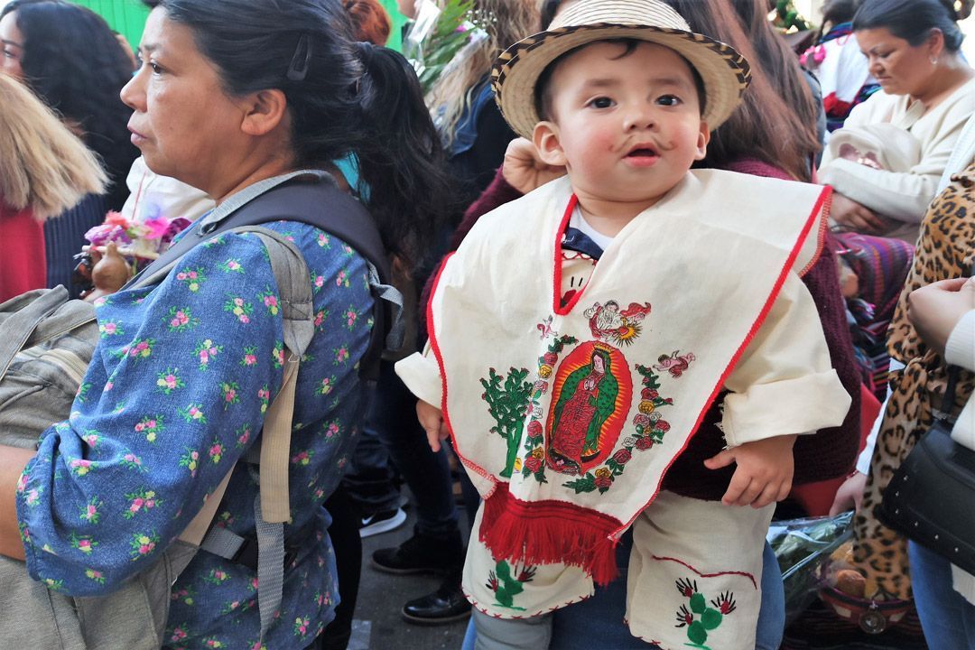 Desde muy temprano, familias enteras acuden al Santuario de Guadalupe, ubicado en el Cerrito de San Lorenzo, niñas y niños participan caracterizados como “Juan Dieguitos”, mientras cargan huacales decorados con flores, alimentos y pequeñas imágenes religiosas como ofrenda de agradecimiento.