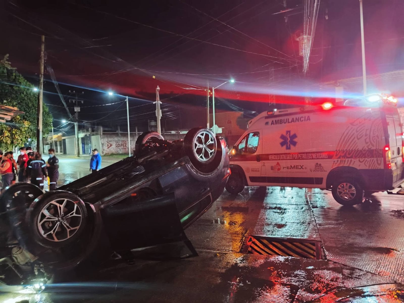 Un hombre y una mujer resultaron lesionados tras la volcadura de un vehículo particular registrada la madrugada de este domingo en las inmediaciones de la colonia Los Gatos.