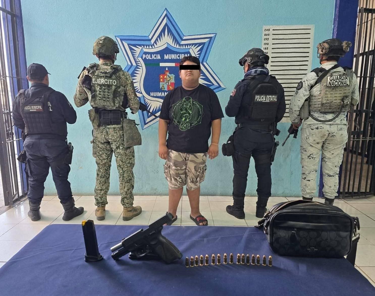 Al realizar la revisión correspondiente, los elementos localizaron una pistola calibre 9 milímetros con cartuchos útiles, motivo por el cual el sujeto fue asegurado de inmediato.