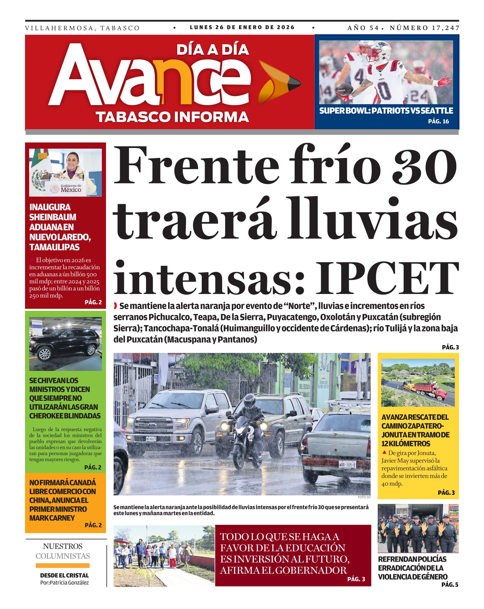 Gobernador de Tabasco alerta por Frente Frío 30 y recomienda extremar precauciones
