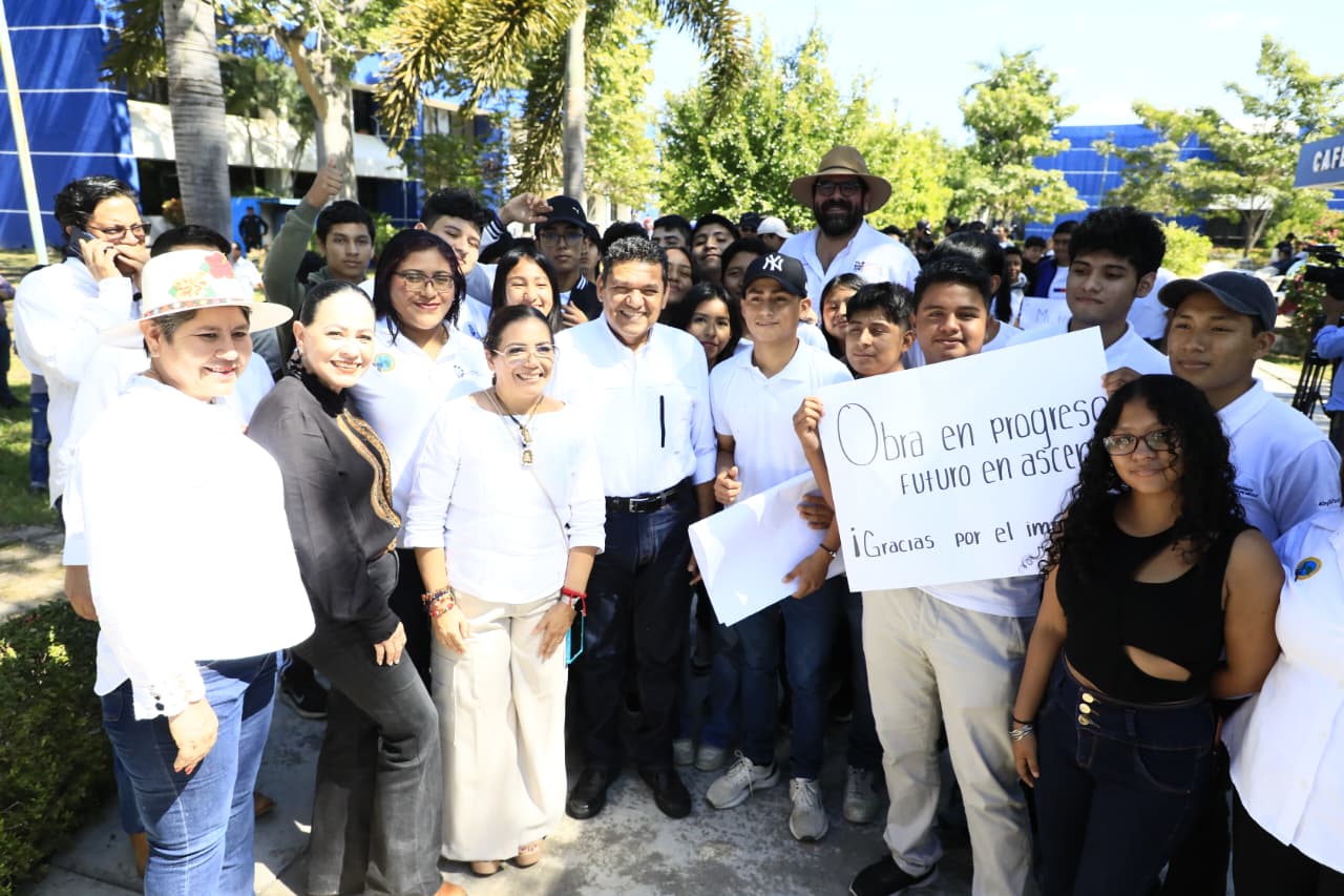 Junto a la alcaldesa Beatriz Castañón Félix, el mandatario ratificó su confianza en las juventudes, de quienes dijo, el Gobierno del Pueblo se encuentra muy pendiente. “Para nosotros la educación no es un gasto. Lo que hacemos es invertir en el futuro y presente de nuestro estado y de nuestro país. Si invertimos en la educación tenemos la esperanza de salir adelante», sostuvo.