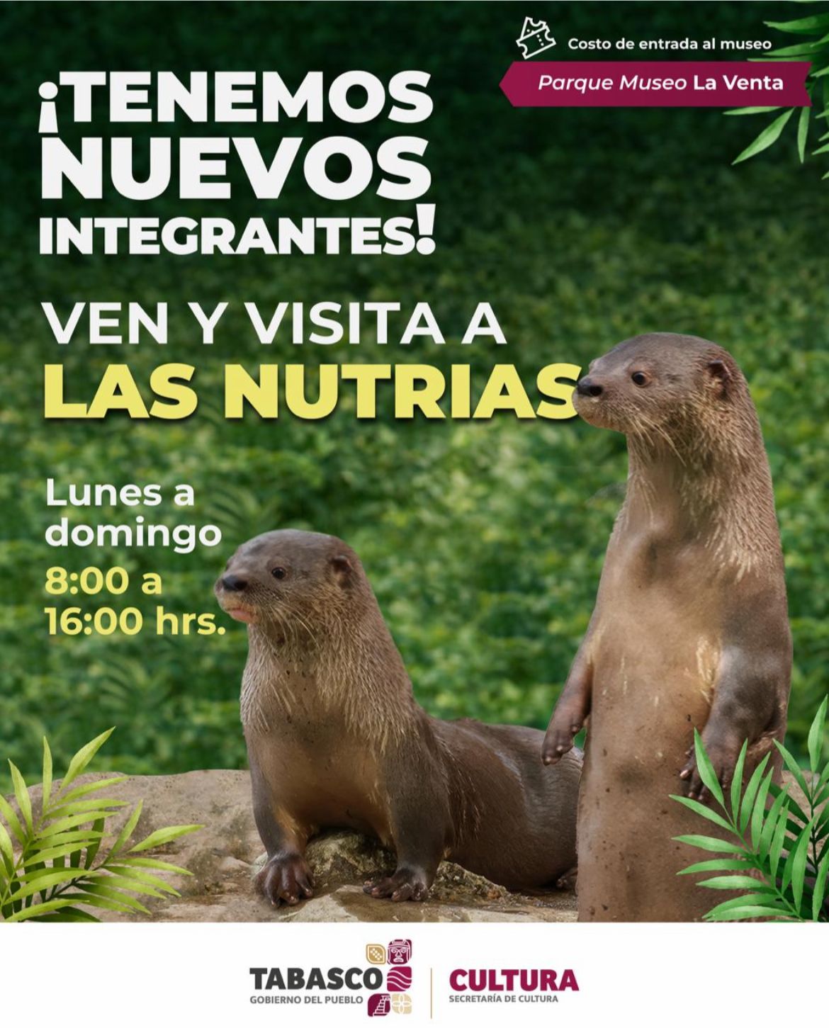 Para quienes deseen asistir a conocer a las nutrias, el Parque Museo La Venta mantiene sus puertas abiertas en un horario de lunes a domingo, de 8:00 a 16:00 horas. El acceso para ver a los nuevos integrantes está incluido en el costo regular de la entrada al museo, permitiendo que el público disfrute de un recorrido completo que incluye tanto las monumentales cabezas colosales como la observación de la vida silvestre en un ambiente protegido.