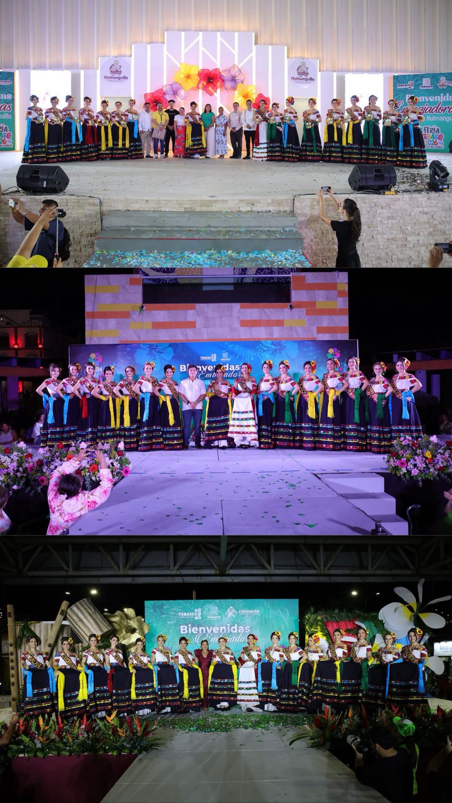 El pasado sábado 18 de abril, las embajadoras de la Feria Tabasco 2026 cumplieron con una agenda llena de algarabía en la región de la Chontalpa. Las actividades oficiales iniciaron puntualmente a las 04:00 PM con una espectacular presentación en el Megadomo de Huimanguillo. Cientos de ciudadanos se congregaron en el recinto para recibir con porras y aplausos a las diecisiete representantes municipales. Este encuentro marcó el inicio de una tarde inolvidable que reafirmó el espíritu festivo de los tabasqueños.