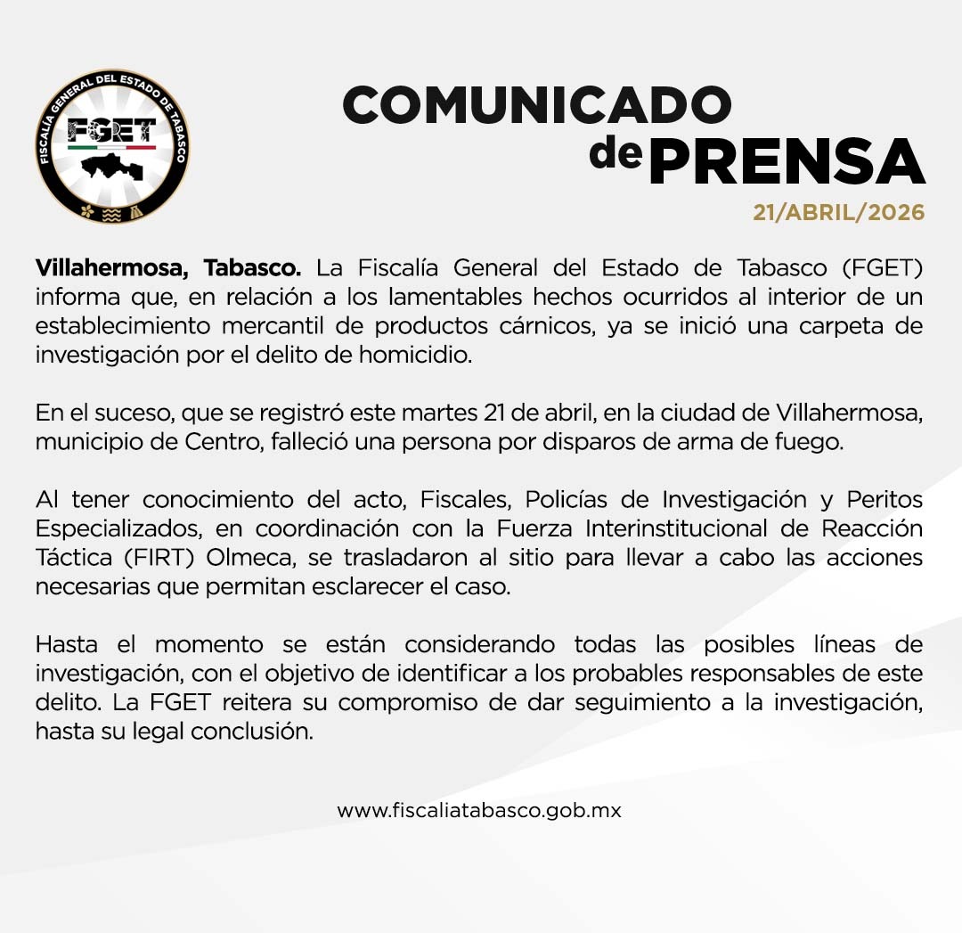 Derivado del trabajo de investigación, y el seguimiento puntual al proceso penal por un hecho de secuestro agravado, la Fiscalía General del Estado de Tabasco (FGET) logró sentencia condenatoria de 50 años de prisión, en contra de Edgar “N” y José Rodolfo “N”.