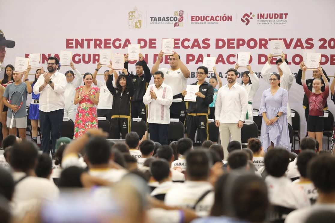 Durante el evento, el mandatario estatal también realizó la entrega de 500 becas deportivas a atletas de alto rendimiento, reconociendo su disciplina, esfuerzo y los logros que han puesto en alto el nombre de Tabasco en competencias nacionales.